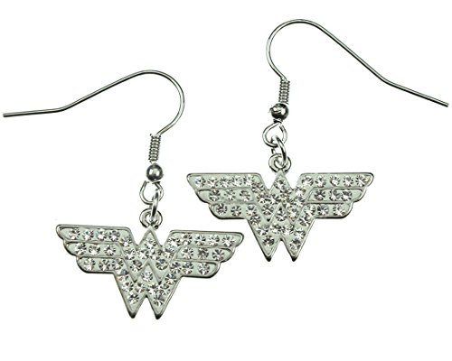 Wonder Woman Stainless Steel Hook Dangling Clear CZ Earrings
