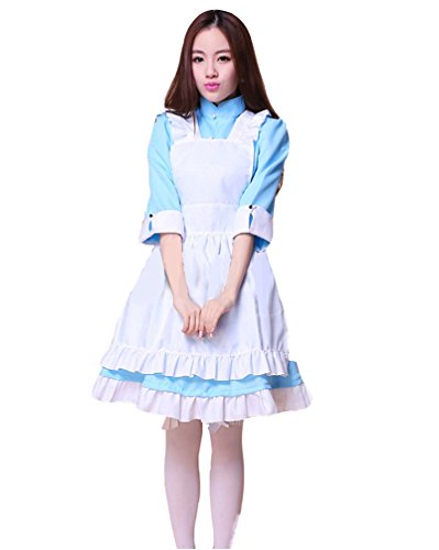 Anime Cosplay Blue French Apron Maid Fancy Dress Costume for women and girls