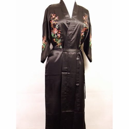 Chinese Women’s Silk Satin Embroidery Kimono Robe Gown Flowers