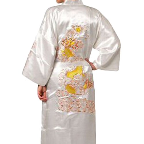 Chinese Men’s Silk Satin Embroider Kimono Robe Gown Dragon