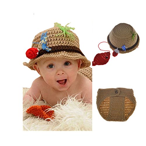Infant Newborn Girl Boy Baby Photography Prop Crochet Fishing Fisherman & Fish Hat Diaper Shoes