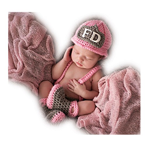 Baby Photography Props Handmade Crochet Knit Fireman Caps Pants Shoes Photo Costume Prop