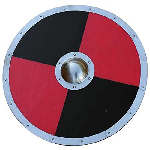Wood And Steel Reinforced Black And Red Medieval Viking Barbarian Combat Shield LARP Costume Piece