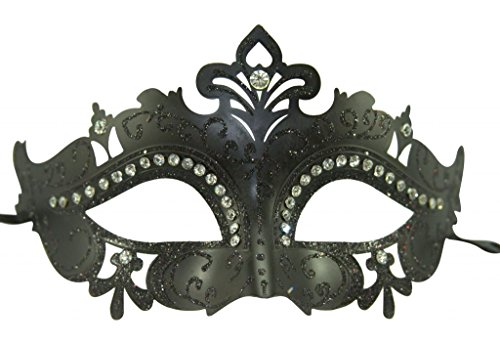 Kayso BD003BLBK Black Luxury Oriental Laser Cut Metal Masquerade Mask with Blue Rhinestones – One Size