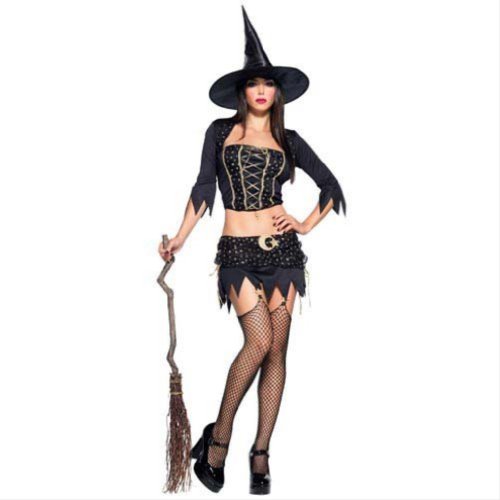 Leg Avenue 4pc.Mystical Witch w/garter skirt, bustier, shrug, and hat 83428 (BLACK/GOLD,SMALL)