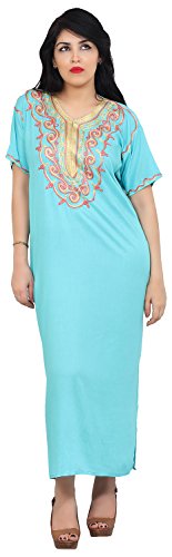 Moroccan Caftan Handmade Light Weight Cotton Embroidery Fits SMALL to MEDIUM Light Blue
