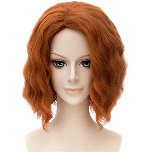 MSHUI The Avengers Black Widow Natasha Costume Cosplay Wig Short Wavy Fluffy Hair