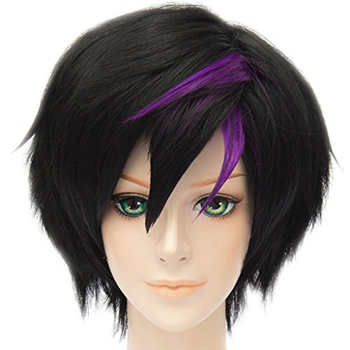 MSHUI Anime Movie Big Hero 6 Go Go Tomago Cosplay Wig Short Black Purple Hair