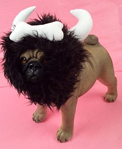 Bone Viking Warrior Horn Headpiece Costume For Dogs Realistic Plush Fuzzy Mane