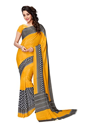 Rajnandini Women’s Crepe Silk Printed Saree(JOPLRF77006_Yellow & Black_Free Size)