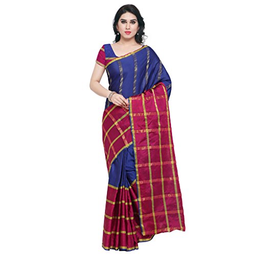 Rajnandini Women’s Cotton Silk Zari Work Saree(JOPLSBC1017_Blue & Pink_Free Size)