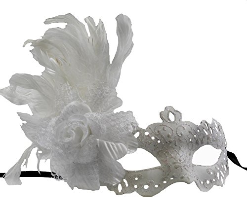 RedSkyTrader Womens Elegant Feathered Venetian Mask One Size Fits Most White