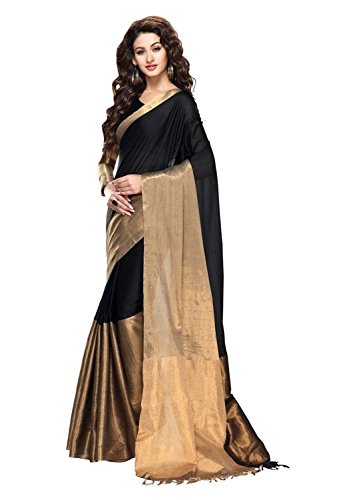 Shonaya Women’s Printed Cotton Black Designer Saree With Unstitched Blouse Piece