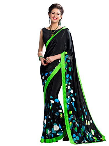 Shonaya Women’s Printed Georgette Black Half & Half Saree With Unstitched Blouse Piece