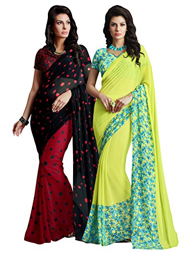 Shonaya Women’s Printed Georgette Multicolor Half&Half Saree With Unstitched Blouse Piece