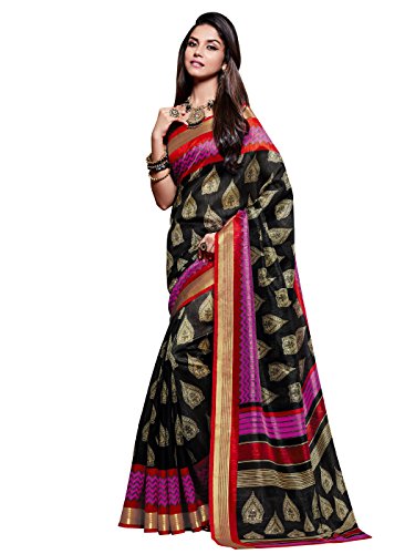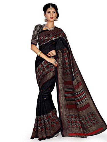 Shonaya Women’s Printed Cotton Silk Black Designer Saree With Unstitched Blouse Piece