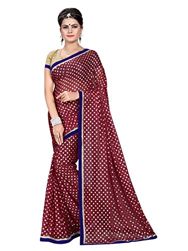 Shonaya Women’s Printed Lycra Maroon Designer Saree With Unstitched Blouse Piece