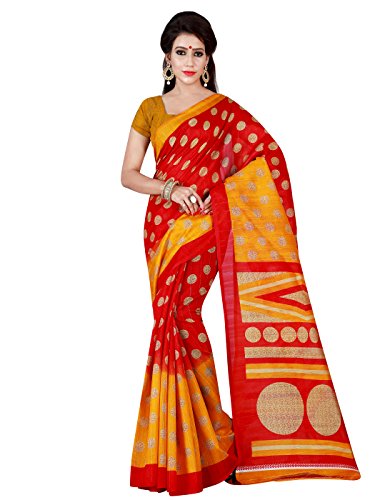 Shonaya Women’s Printed Cotton Art Silk Red Designer Saree With Unstitched Blouse Piece