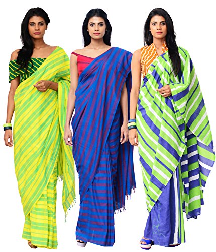 Shonaya Women’s Printed Cotton Art Silk Black Stripes Print Saree With Unstitched Blouse Piece