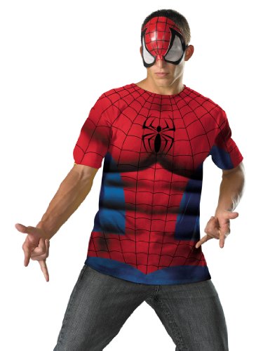Classic Spiderman Costume T-Shirt & Mask Red Easy Superhero Theatrical Mens
