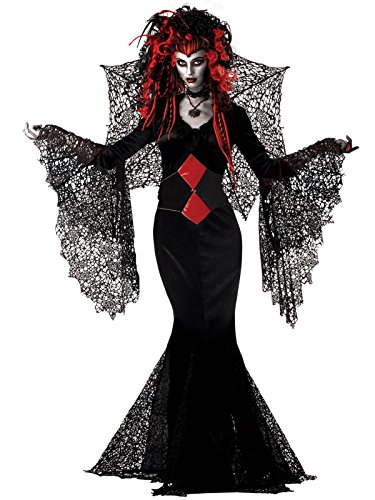 Gothic Costume Black Widow Spider 2 Piece Set Womens Long Gown and Web Wings