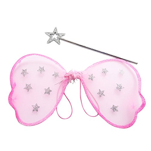 Tinksky Butterfly Wing Prop Girls Fairy Outfit Angle Wing Wand for Costume Cosplay Party Performance Christmas Birthday Gift for Children girls 2pcs/set