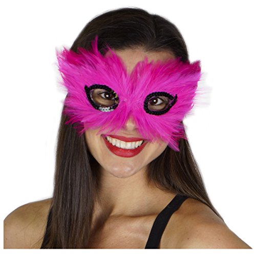 Zucker Feather Products 3D Hackle Decorative Mask, Shocking Pink/Black