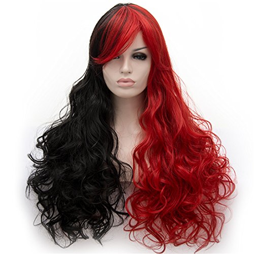 OYIXU 65m 25.5″ Black White Separate Synthetic Lolita Women Cosplay Fluffy Wavy Curly Hair Wig