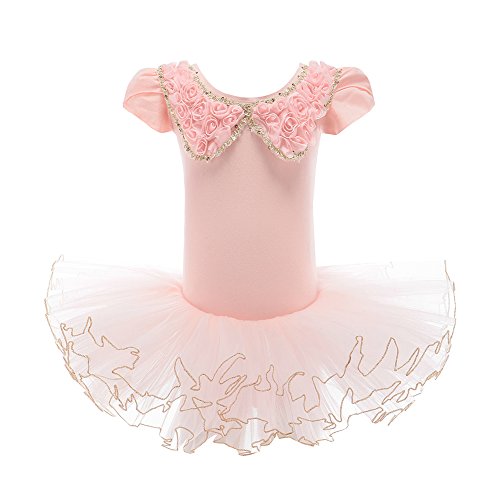 XTS Toddlers Kids Girl Dance Bow Costumes Tutu Ballet Dress Dancewear with Peter Pan Collar