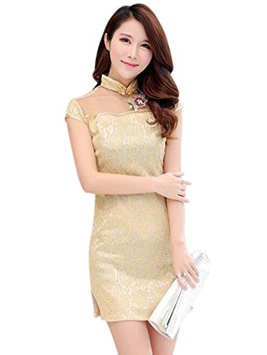 Aro Lora Women’s Lace Solid Color Chinese Cheongsam Mini Party Dress