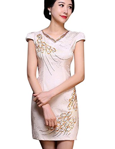 Aro Lora Women’s Sequins Vintage Qipao Chinese Traditional Cheongsam Dress