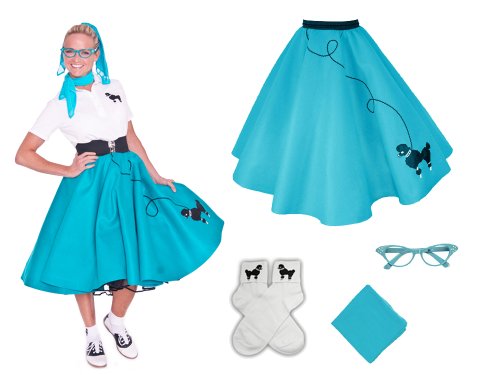 Hip Hop 50s Shop Adult 4 Piece Poodle Skirt Costume Set