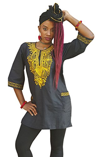 Black cotton Dashiki African Top with Gold Embroidery