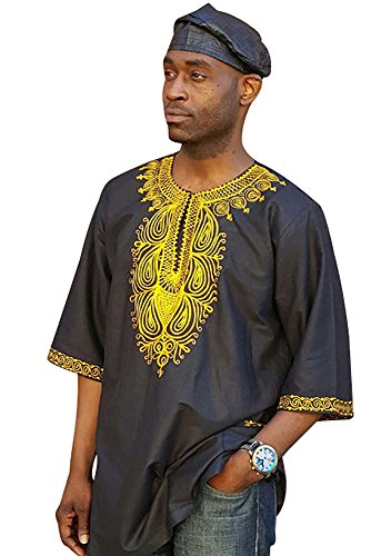 Black cotton Dashiki African Shirt with Gold Embroidery