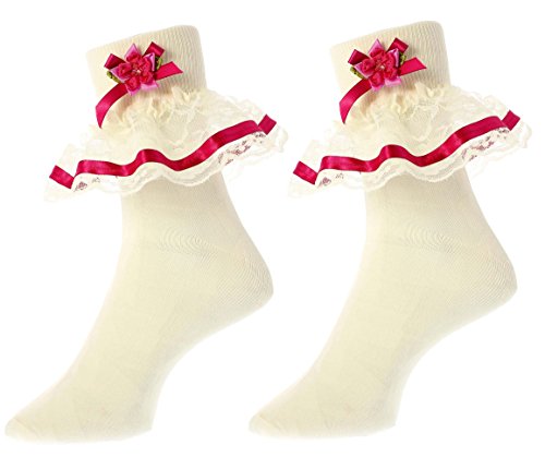 2 Pair Corrine Ivory Lace Nylon Bobby Socks for Girls