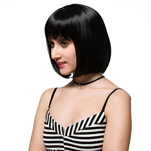 14” Straight Short Hair Flapper Bob Wigs with Flat Bangs Cosplay Wig