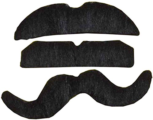 12 Assorted Black Fake Peel And Stick Mustaches Costume Accessory
