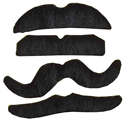 12 Assorted Black Fake Stick On Mustaches Costume Accessory