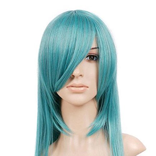 Teal Blue Green Medium Length Straight Anime Cosplay Wig Costume Wig
