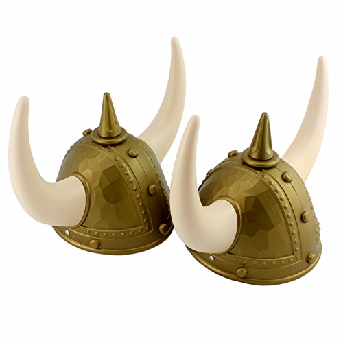 Two Viking Helmets with Elastic Neck Strap & Horns (2-hat pack), Adult Size Helms for Costume Dress-up, Role Play & Halloween