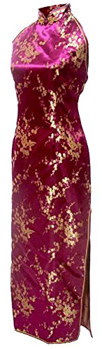7Fairy Women’s Vtg Burgundy Floral Halter Backless Long Chinese Dress