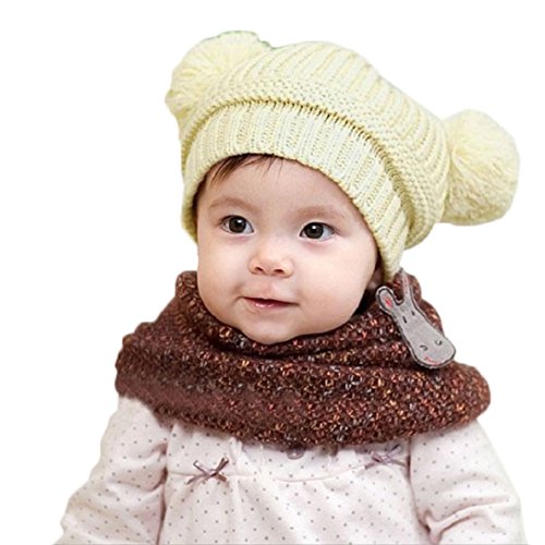 Fullkang Cute Baby Kids Girl Boy Dual Balls Warm Winter Knitted Cap Hat Beanie