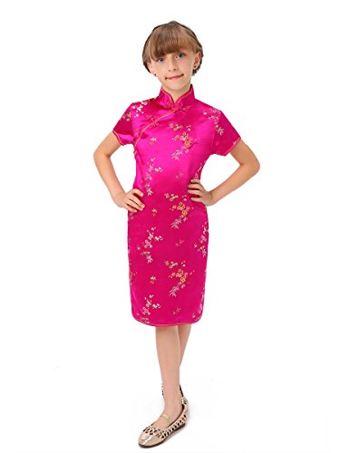 Bitablue Girls’ Fuchsia Colorful Peony Chinese Dress