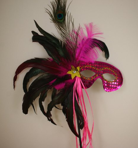Mardi Gras Masquerade Feather Costume Stick Mask or Table Centerpiece Decoration