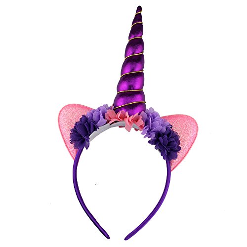 YanJie Shiny Unicorn Horn Ears Flower Headband Cosplay Costume