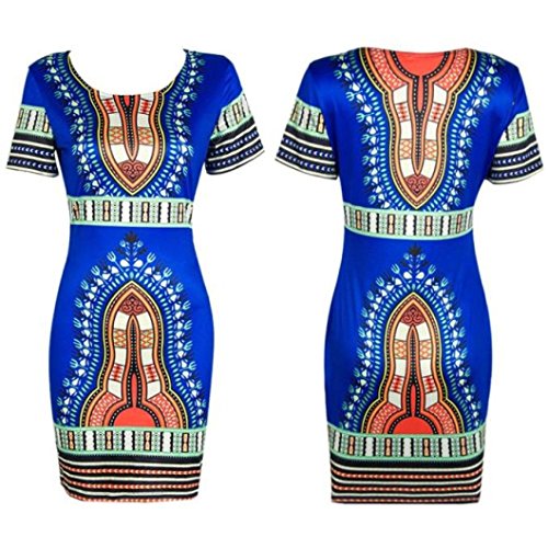 Sunfei ® Women Traditional African Print Dashiki Bodycon Sexy Short Sleeve Dress