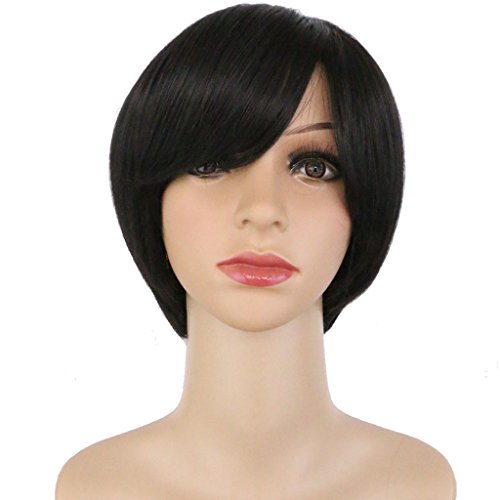 DODOING Short Straight Hair Bob Wigs Flat Bangs Party Cosplay Synthetic Hair Wig for Women Lady