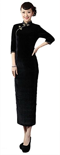 CK sky Women’s Chinese Silk Velour Long Cheongsam Qipao Dress