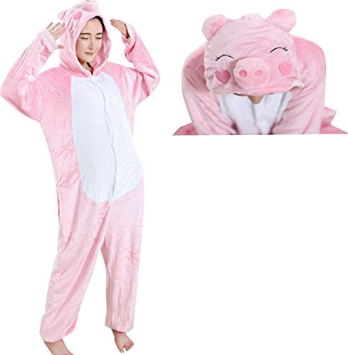 JudyBridal Unisex Cartoon Pink Pig Onesie Adult Pajamas Cosplay Costume