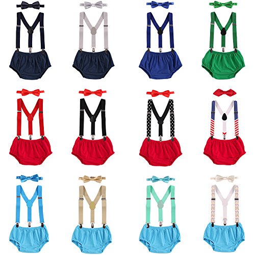 Baby Boys Adjustable Y Back Elastic Strong Clip Suspenders Outfit First Birthday Bloomers Bowtie set